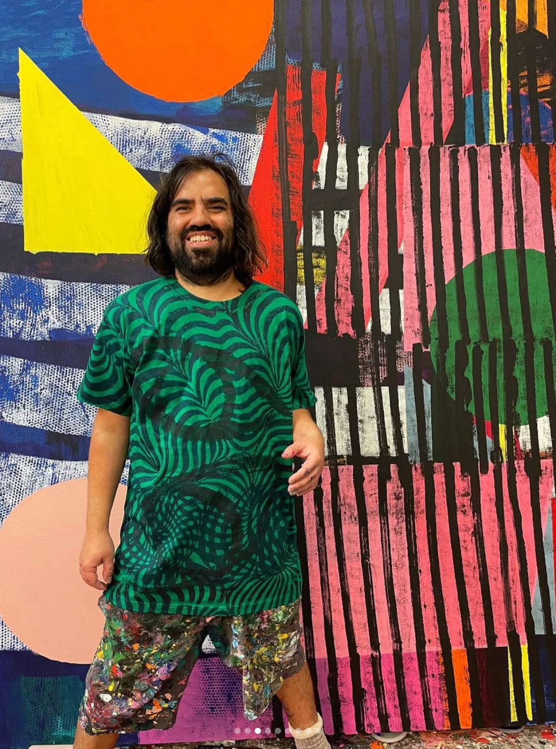 These screenprinted t-shirts by LA artist Nick Aguayo are all varied and one-of-a-kind. Their interplay of color and pattern are as vibrant as his paintings, in wearable form.