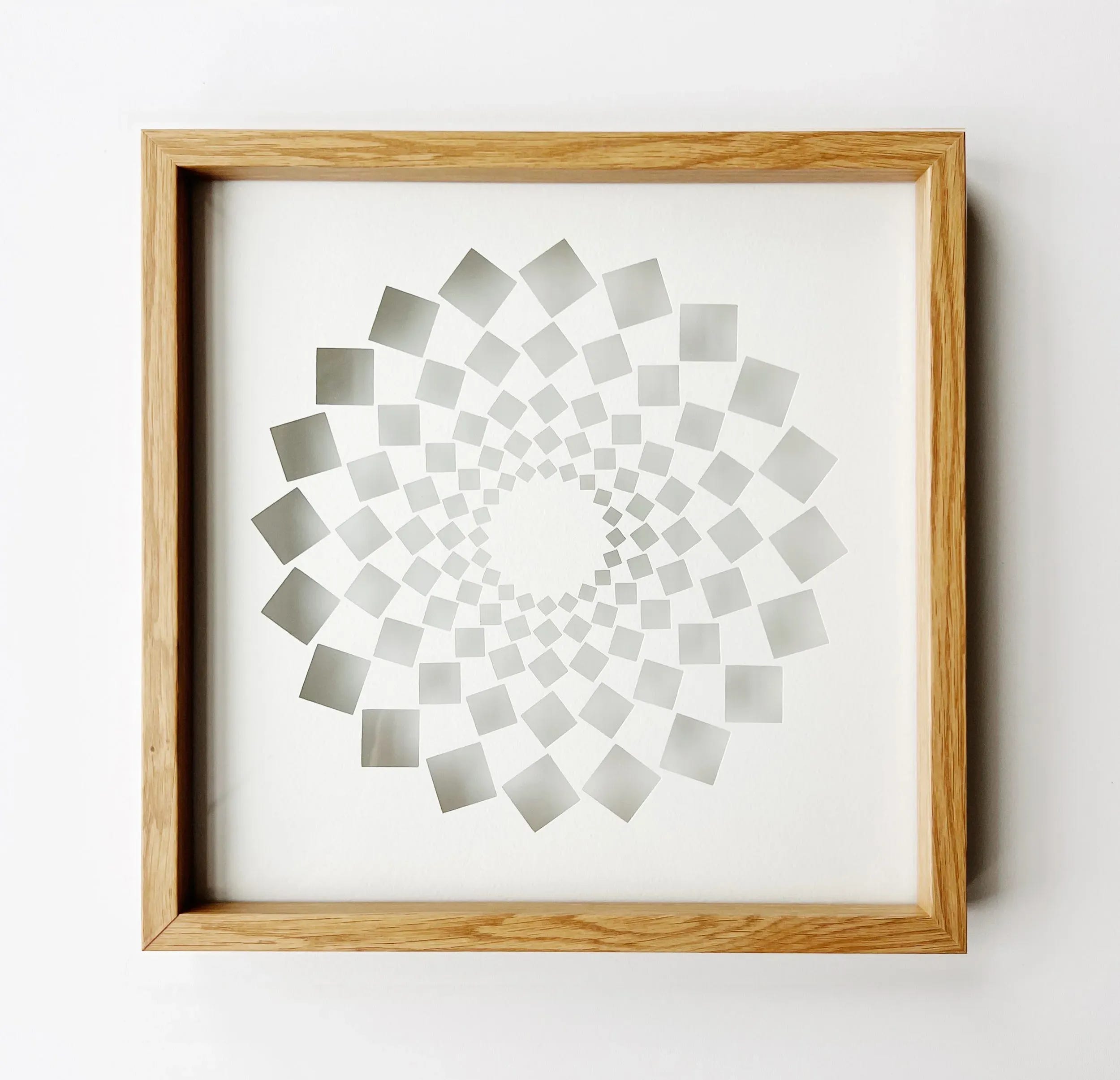 We love the transparency and shadow play in this series of work by San Francisco artist Jessie Laura, each one handcut cotton paper against a backless floating frame. They’d look dynamic under any lighting condition.