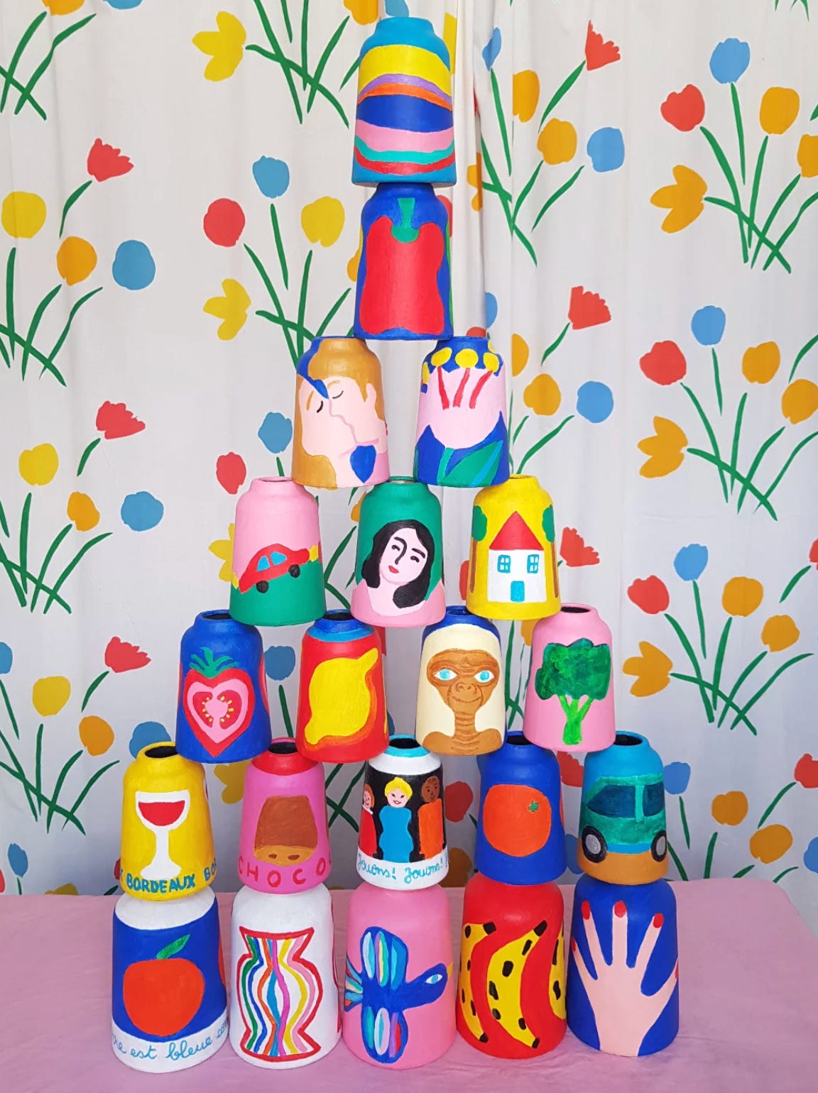 Would you believe these are made out of cardboard? These hand-painted vases (with a water-resistant interior) by French artist Eve Lippa are quirky, colorful, and probably just what your home needs.